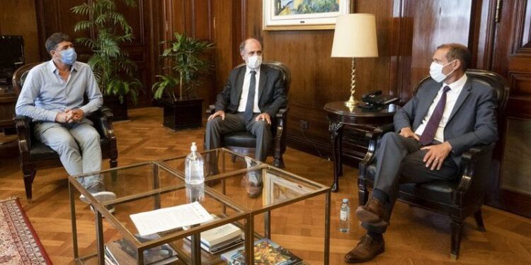El gobernador Omar Gutiérrez participó hoy en la Ciudad Autónoma de Buenos Aires (CABA) de una reunión con el presidente del Banco Nación Argentina, Eduardo Hecker, y el titular de la Fundación Empretec, Adrián Lebendiker, con el objetivo de avanzar en una alianza estratégica con la provincia -a través del COPADE- para la promoción y desarrollo de las Pymes neuquinas.