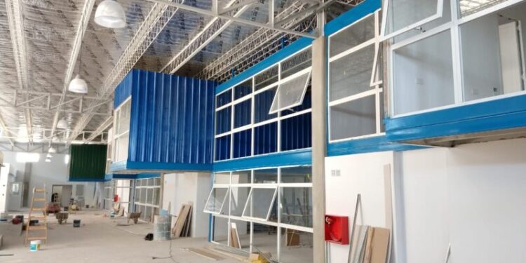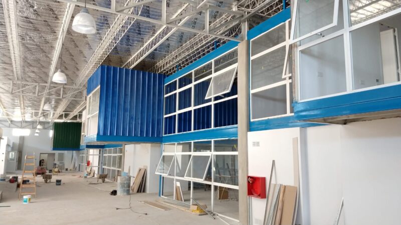 Más allá de que la estructura de los galpones de la ex Luna Hermanos era importante, Pérez explicó que la estructura estaba bien conservada, “hoy por hoy está desconocido, se hizo todo el revestimiento exterior con chapa color, todos los interiores, se trabajó mucho con construcción en seco, lo que hizo que los tiempos sean más rápidos y estamos prácticamente en terminaciones”.