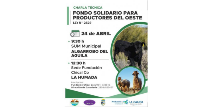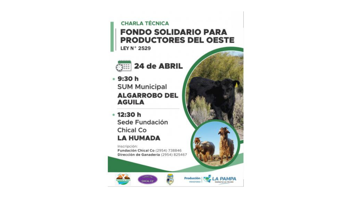 El Ministerio de la Producción, la Fundación Chical Có y los municipios de Algarrobo del Águila y La Humada, realizarán jornadas informativas sobre el Fondo Solidario para Productores del Oeste (Ley N° 2529).