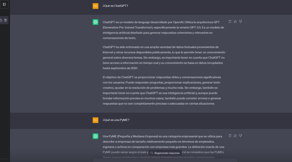 - Generación de contenido: puede ayudar a generar contenido para blogs, redes sociales u otros canales de comunicación de la empresa, ofreciendo ideas, redactando párrafos iniciales o proporcionando sugerencias creativas para la creación de contenido.