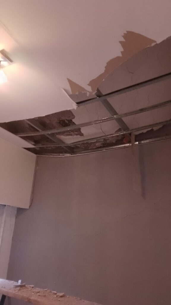 El Club Barracas sufrió daños principalmente en la cabecera del gimnasio principal, donde se ubica la cancha de básquet. La acción del viento sobre la gran superficie del muro posterior provocó un desplazamiento, evidenciado en mayor medida en el extremo superior, lo que provocó el levantamiento de la cubierta en su último tramo. Esto implicó la falla de las correas de fijación y rotura de chapas, como también la aparición de fisuras en el muro de cierre. Además, en la vivienda lindera al cerramiento posterior del club, como consecuencia del movimiento del mismo, se generaron importantes fisuras en los muros y cielorrasos vinculados.