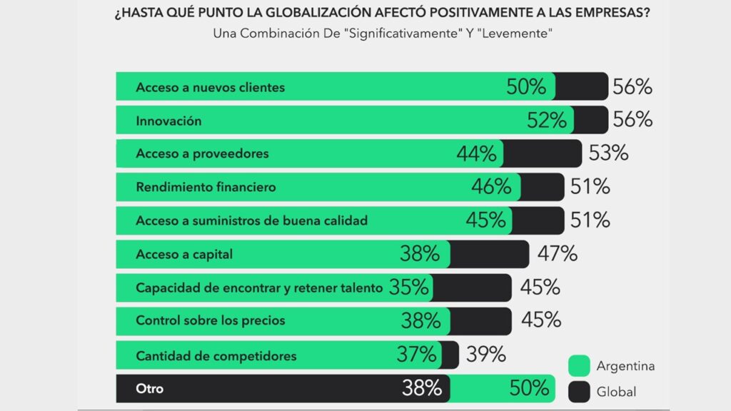 Las pymes argentinas están diversificando clientes y proveedores, lo que demuestra cierta resiliencia y agilidad de cara a las amenazas externas. El 56% cree que tener una red de proveedores diversa y global ayuda a proteger a las pequeñas empresas frente a los vaivenes económicos.