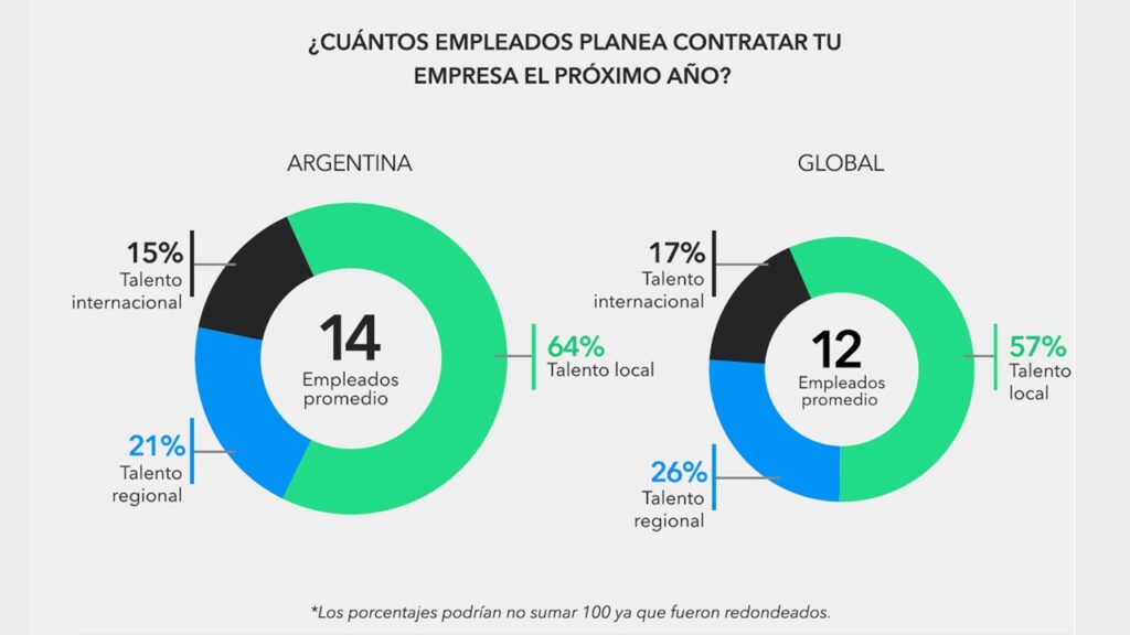 También reconocen la importancia de generar empleo local. El 70 % de las pymes encuestadas afirma estar priorizando la contratación de talento local. En promedio, las empresas encuestadas están planeando contratar catorce empleados, de los cuales el 64 % será talento local, el 21 % talento regional y el 15 % talento internacional.