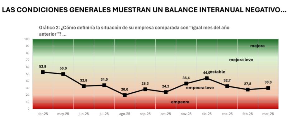 Pese a estos datos, el informe advierte que la recuperación aún no se consolida. El clima de negocios se mantiene en terreno “regular” y sin señales claras de crecimiento sostenido.