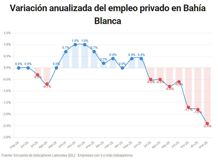 El comportamiento de los indicadores consolida un escenario de retracción sostenida del empleo formal en el sector privado, sin señales de recuperación en el inicio de 2026.