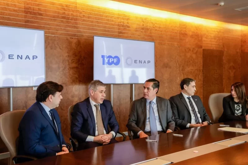 El acuerdo se firmó ayer en las oficinas de YPF en Buenos Aires y contó con la participación del presidente de la compañía, Pablo González, el gerente general de ENAP, Julio Aranis, y el CEO de YPF, Pablo Iuliano, entre otros ejecutivos y ejecutivas. También, participó del encuentro el secretario de Energía de la Nación argentina, Darío Martínez.