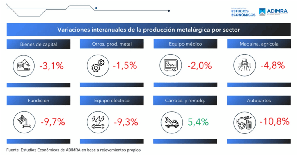 Los datos provienen del informe elaborado por el Departamento de Estudios Económicos de la Asociación de Industriales Metalúrgicos de la República Argentina (ADIMRA).