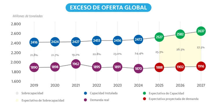 Por otros lado, la CAA alertó que por el enorme stock global de acero chino. “La sobreoferta global de acero, liderada por China, continúa presionando con mayor exportación, afectando los diferentes mercados. En diciembre de 2025, China superó los niveles de exportación vistos por última vez en 2015”, señalaron en el informe.