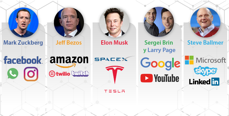Elon Musk; los fundadores de Google, Sergey Brin y Larry Page; y del exdirector de Microsoft, Steve Ballmer.