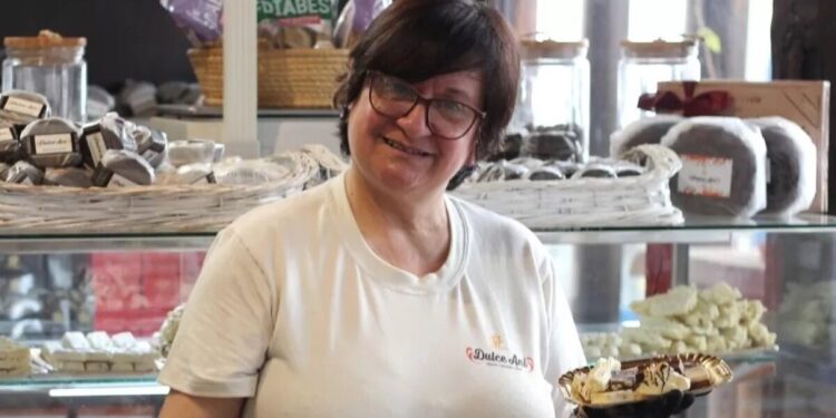 Conocimos este lugar, nos enamoramos. Tanto a mi compañero como a mí, nos fascinó y nos atrapó. Y, como no teníamos dinero, siempre estábamos pensando qué hacer y empezamos a considerar cómo venirnos a vivir a este lugar. Entonces a mí se me ocurrió hacer algo dulce. ¿Viste que vos vas a Mendoza y tenés vino, vas a Mar del Plata y tenés los alfajores, a Bariloche o San Martín y tenés los chocolates? Bueno, por el tema del mar y la espuma de mar merengada, surgió la posibilidad de hacer un alfajor diferente. Te estoy hablando de hace doce, trece años atrás, que fue cuando empezamos con este proyecto. Y se nos ocurrió hacer este tipo de alfajores: de dulce de leche que en el medio tiene un relleno de un suave merengue, bañado en chocolate negro. Por muchos años estuvimos con sólo ese alfajor.