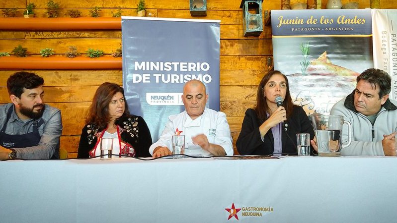 Del encuentro participaron la subsecretaría de Turismo, Magdalena Ardito y los chefs Juan Rivera y Emanuel Leiva, ambos pertenecientes al Sello de Distinción de la Gastronomía Neuquina. Acompañaron la presentación Verónica Arnedo, directora provincial de Relaciones Institucionales del ministerio de Turismo y Francisco Pino, de la Bodega Humberto Canale.