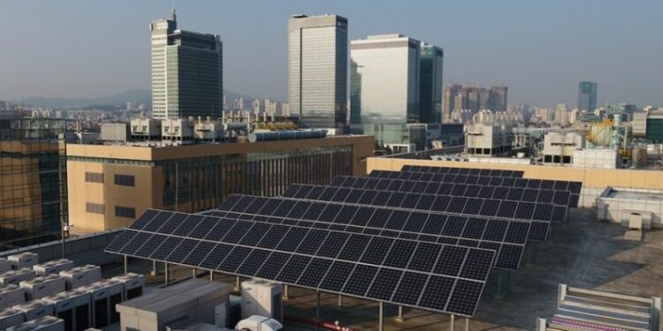 [su_note note_color=”#e3e3e3″]El plan de la multinacional consiste en instalar aproximadamente 42,000㎡ de paneles solares en Samsung Digital City, en Suwon, a partir de este año. De igual forma, la compañía continuará agregando aproximadamente 21,000㎡ de paneles solares y plantas de generación de energía geotérmica a partir de 2019 en su campus Pyeongtaek.[/su_note]