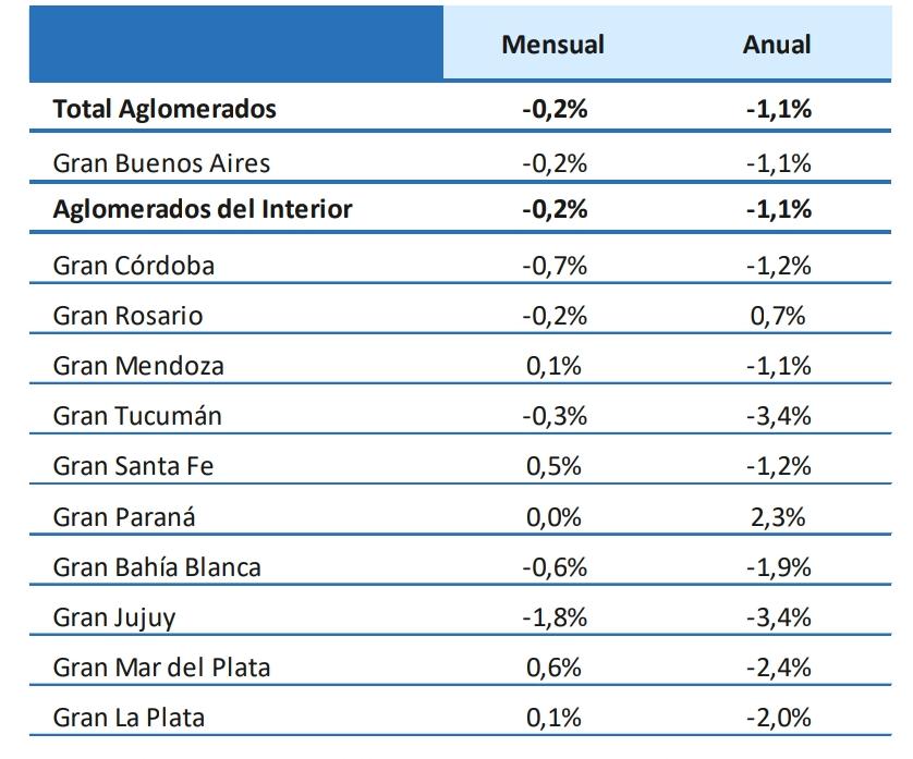 El dato confirma un semestre completo de retrocesos interanuales en el aglomerado bahiense y una baja mensual del 0,6%, en línea con la tendencia negativa observada en otros centros urbanos del país.