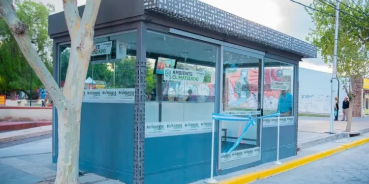 La primera parada de colectivos con aire acondicionado del país fue inaugurada recientemente en la plaza Madre Universal, localidad de Rivadavia en la provincia de San Juan. El módulo cuenta además con pantalla digital que le informa a los pasajeros el recorrido en tiempo real de la unidad.